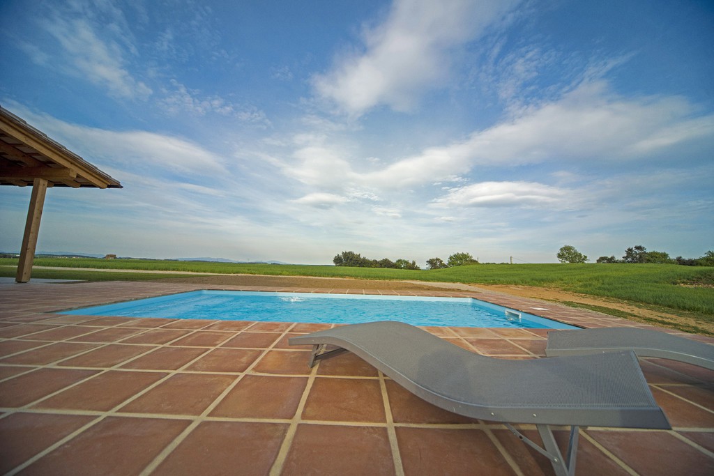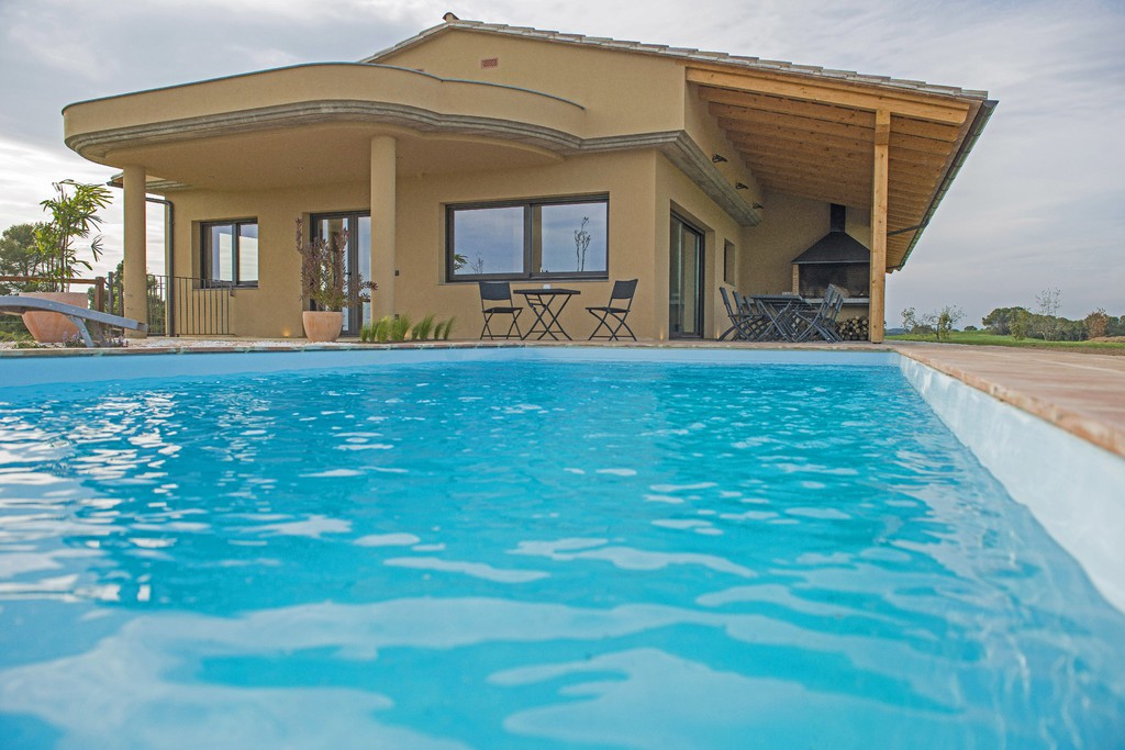 La piscina exterior d'El Serrat envoltada por un preciós jardí és una més de les prestacions que ofereix la casa, pensada per a gaudir amb la família i els amics.