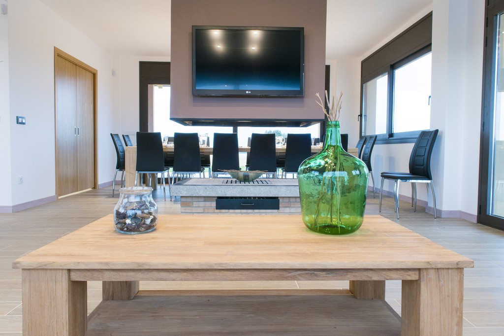 La sala d’estar i el menjador disposen de grans obertures, estan totalment adaptats per a la celebració d’esdeveniments i contenen una acollidora llar de foc 360º. La cuina és totalment funcional i està completament preparada per a poder-hi elaborar tot tipus de plats. Tota la casa està acondicionada amb calefacció per terra radiant per fer més comfortable l’estada.