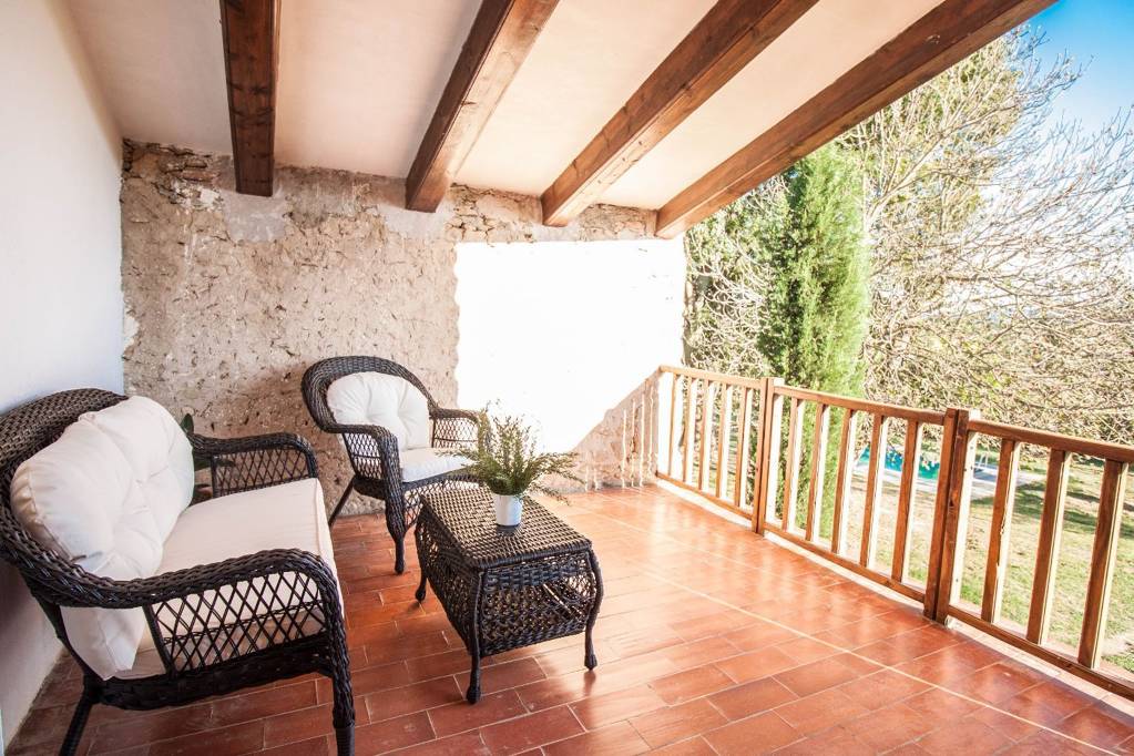 A l´exterior, com annex a la casa, hi trobem un porxo amb una taula, cadires i una barbacoa.