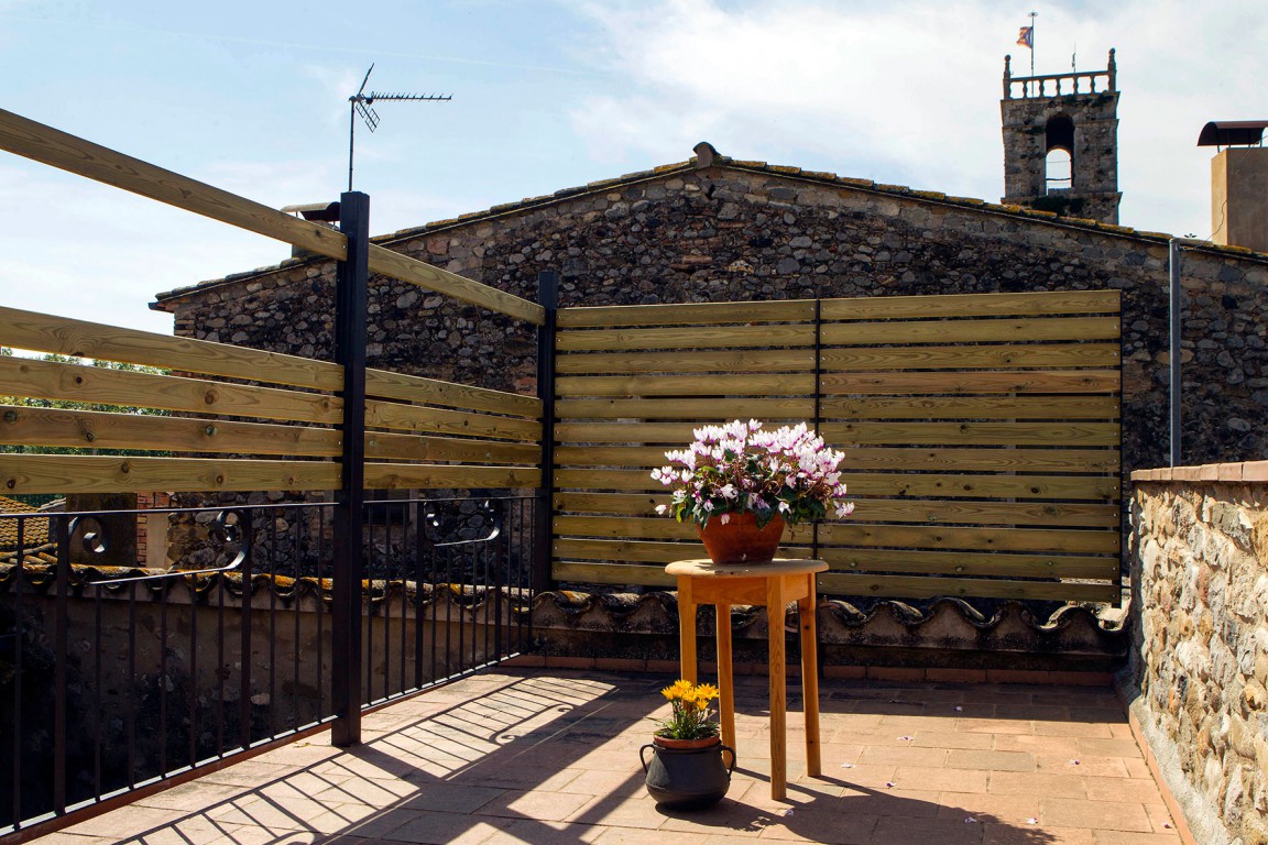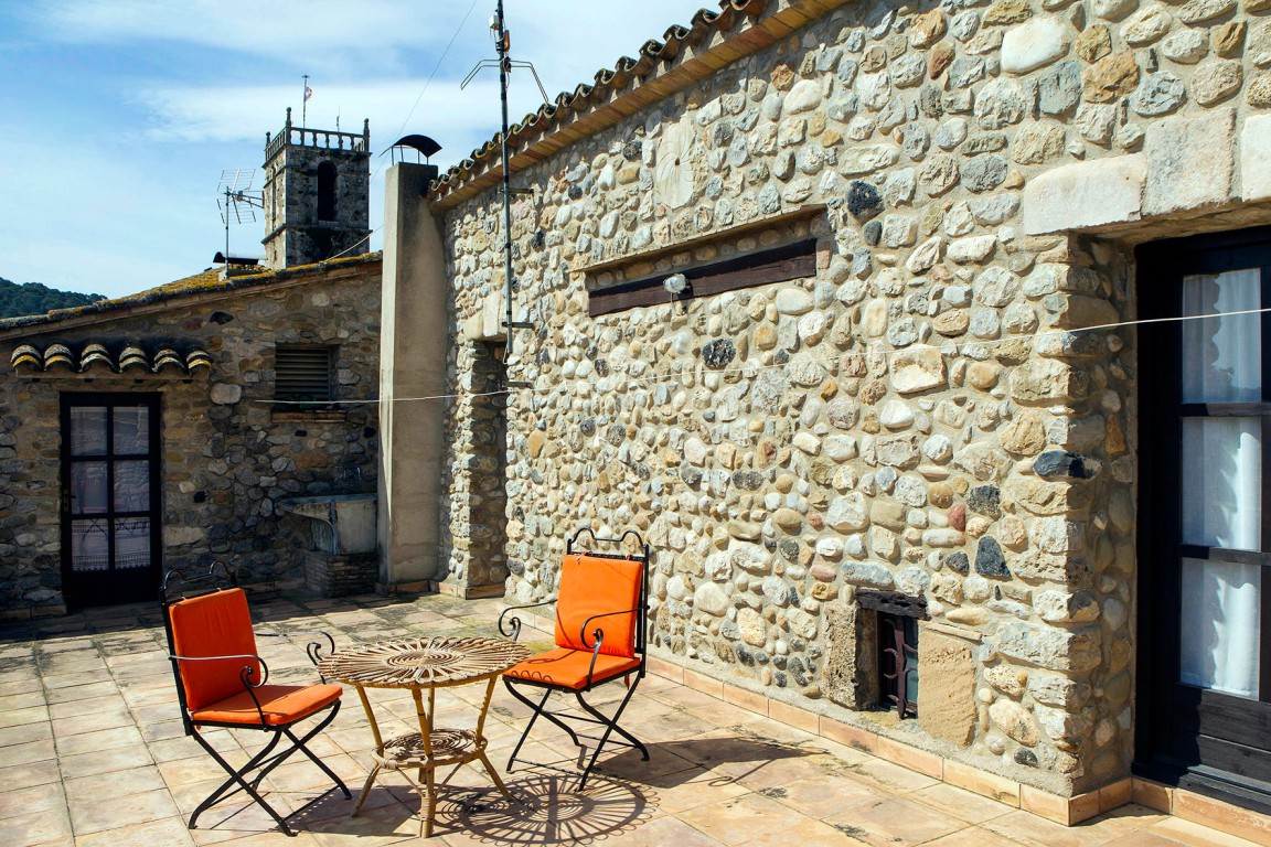 Un passeig d'arbres obre la porta d'Orfes, un petit poble d'un centenar d 'habitants, en un vell paisatge de transició entre la plana empordanesa i els aspres de la Garrotxa. És el Terraprim, com ja escrivia Josep Pla " treballat, tranquil i proper".