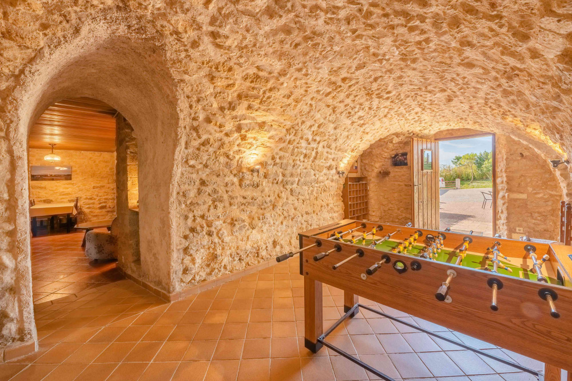 Casa de dues plantes amb 7 habitacions. A la planta baixa hi trobareu un ampli i confortable saló per gaudir d’una sessió de cinema amb una gran TV, DVD i equip de música, una sala de jocs amb futbolí i un petit wc. Un altre saló menjador o espai per a tertúlies on jugar una partida de cartes al costat de la llar de foc. A la primera planta és on trobem la cuina, totalment equipada, oberta a un menjador rústic molt ampli amb llar de foc. Les habitacions estan distribuïdes entre la primera i la segona planta en 2 triples amb bany, 2 de matrimoni amb bany complet, 1 habitació amb 2 llits individuals i bany, 2 habitacions de matrimoni i un bany complet. Calefacció a tot el conjunt i dues llars de foc. També disposa de wifi.